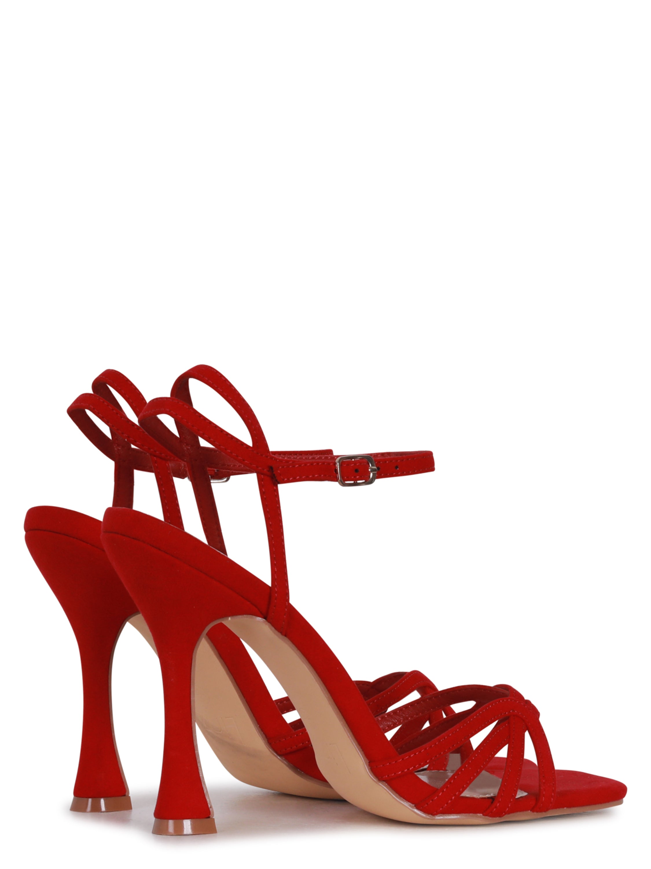 Discover Serena, the perfect soft faux suede sandal for any formal occasion. This stylish high-heeled sandal features a caged front strap that adds a modern flair to any look. With its timeless design, Serena is the ideal companion for weddings and parties.